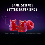 Enhanced with Zinc, Vitamin D3, and CoQ10, it's a complete nightly restoration stack in two delicious raspberry gummies.